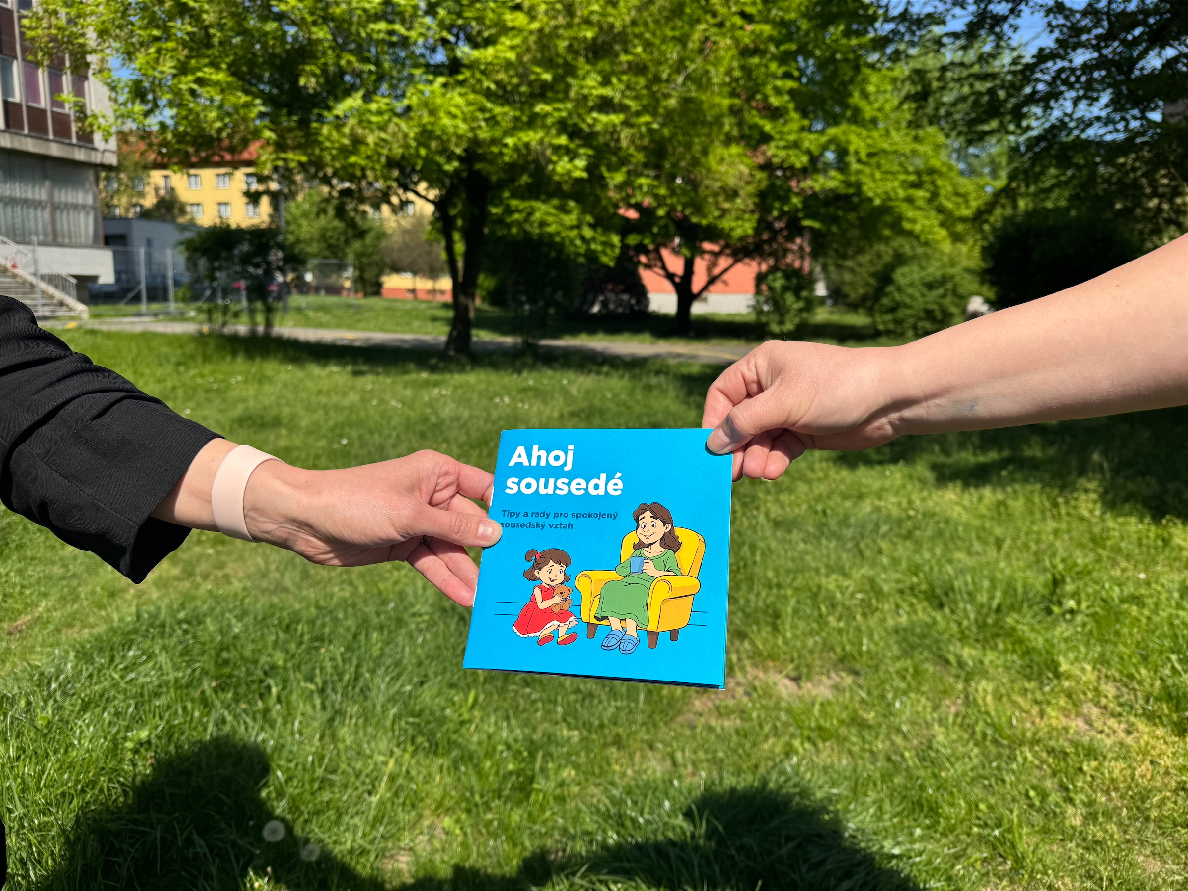 Součástí uvítacího balíčku je brožura „Ahoj sousedé: Tipy a rady pro spokojený sousedský vztah“, která usnadní klientům lépe a rychleji se zorientovat v nových pravidlech soužití se sousedy bytového domu.