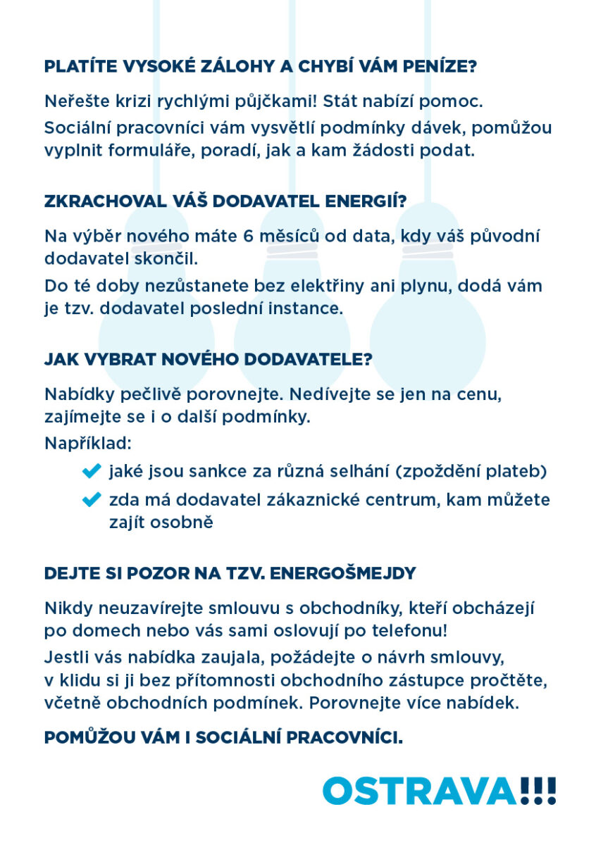 - Informace Zkrachoval váš dodavatel energií? Platíte vysoké zálohy za energie? leták