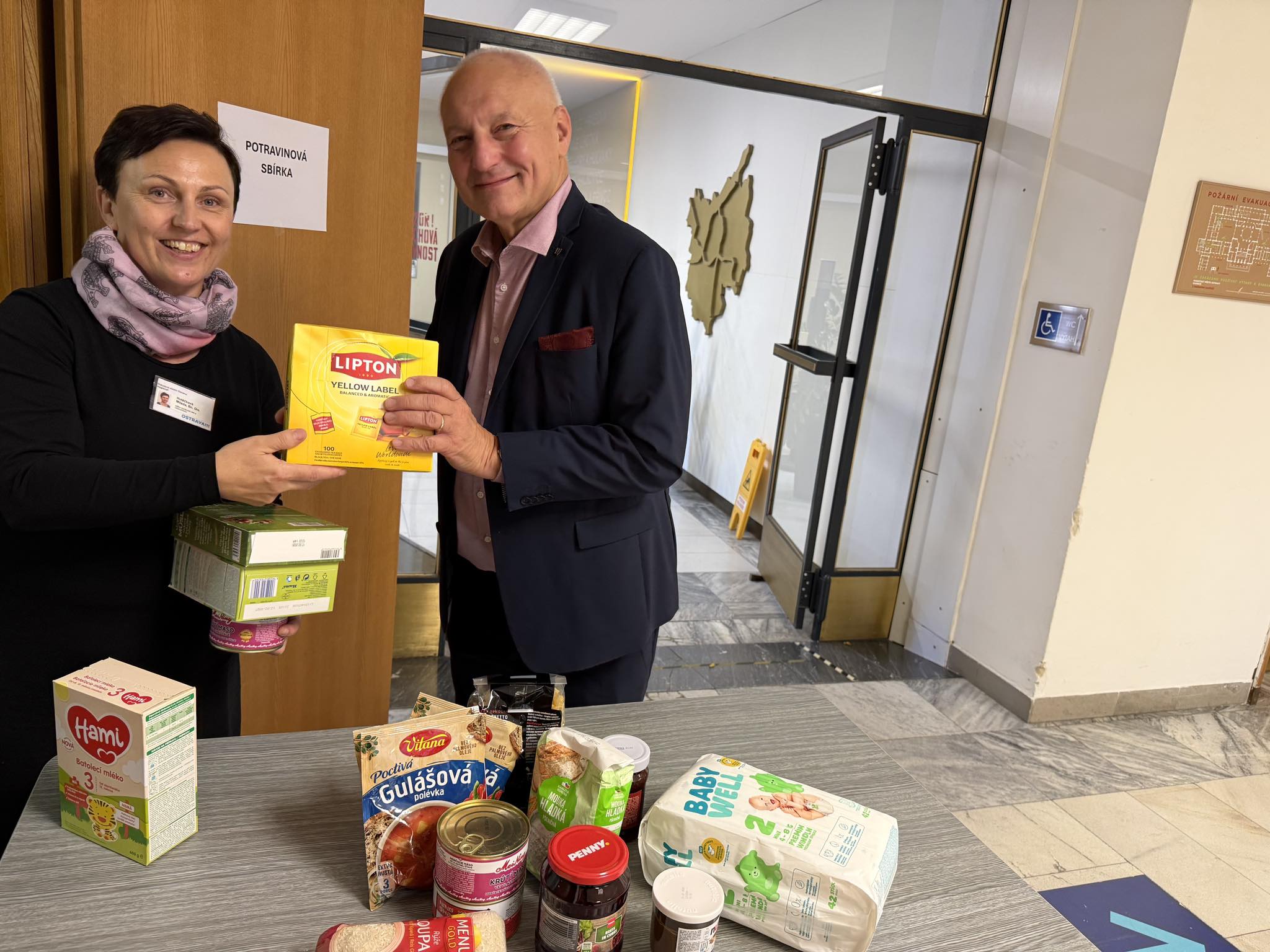 Během prvního dne sbírky přinesli pracovníci magistrátu na sběrné místo v budově Nové radnice desítky kilogramů potravin. Převládaly těstoviny, rýže, olej, masové konzervy či paštiky. Nechyběly ani dětské příkrmy, instantní polévky nebo luštěniny. Součástí darů byly rovněž balíky hygienických potřeb a drogerie – například zubní pasty, kartáčky, mýdla, šampony či dětské pleny.
